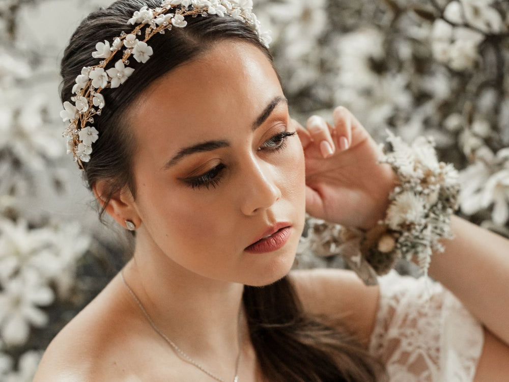Mit einer Bridal Crown - auch Diadem, Tiara, Brautkrone genannt - krönst du deine Brautfrisur und machst zusammen mit deinen anderen Brautaccessoires deinen Look perfekt. Ob Boho, Glam, Vintage, Urban, Modern oder Fine Art Wedding: wir haben wunderschöne Crowns mit Perlen, Strass und Blütenelementen aus Metall oder Porzellan für dich im Sortiment in den Farben gold, rosegold und silber.