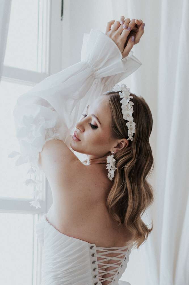 Der Haarschmuck für deine Hochzeit sieht toll in langen offenen oder halboffenen Haaren aus, begeistert uns aber genau so als Krönung für einen Low Bun bzw. tiefen Dutt, einen Braided Bun oder einen geflochtenen Mermaid Zopf - dann gerne in Kombination mit einem passenden Haarpin (Haarnadel) oder einem Brautkamm.