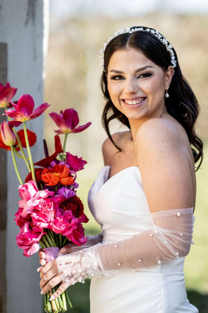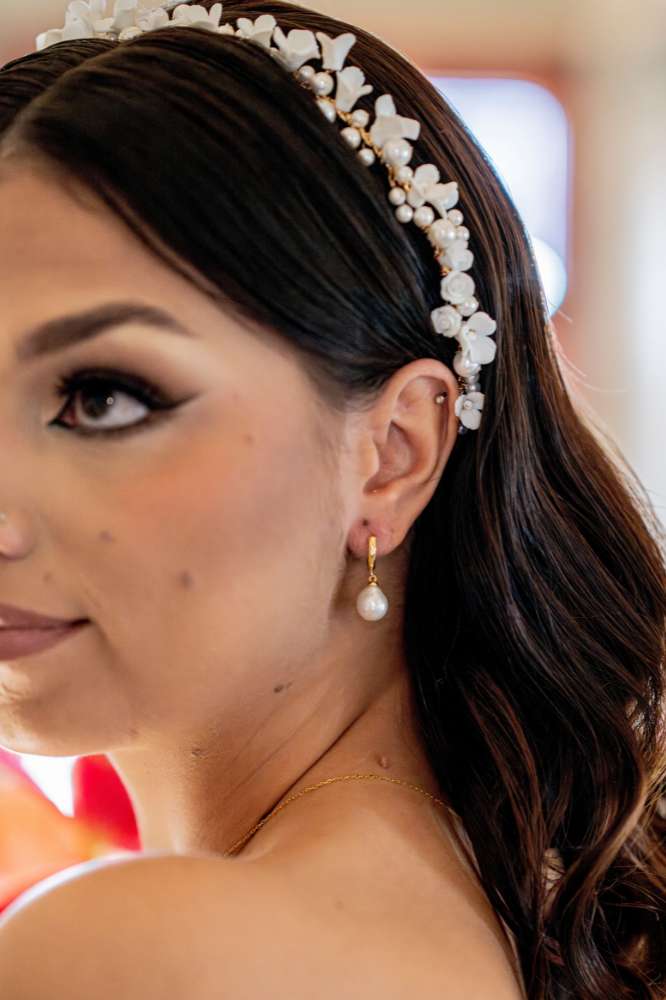 Unser schöner Neuzugang: Rose! Der Haarreif mit verschiedenen schneeweißen 3D Blüten gehört zu den zierlicheren und damit leichteren Headpieces. Er sieht wunderschön in vielen Brautfrisuren aus. Wir mögen ihn ganz besonders zum lockeren Up-do, aber auch im offenen Haar begeistert uns das schöne Stück.