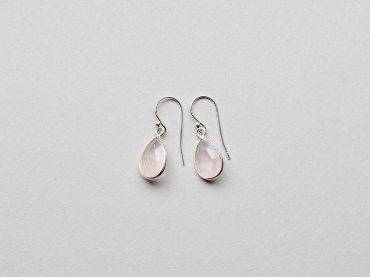 Delicate Drops: Diese wunderbaren Ohrhänger mit dem großen facettierten Stein begeistern mit ihrem traumschönen blassrosa Rosenquarz.