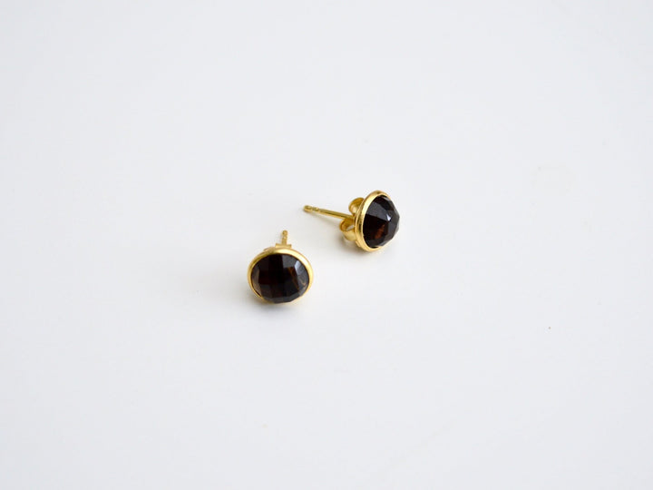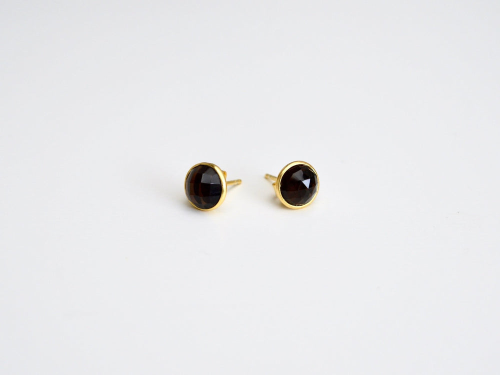 Runde Rauchquarz Ohrstecker facettiert vergoldet