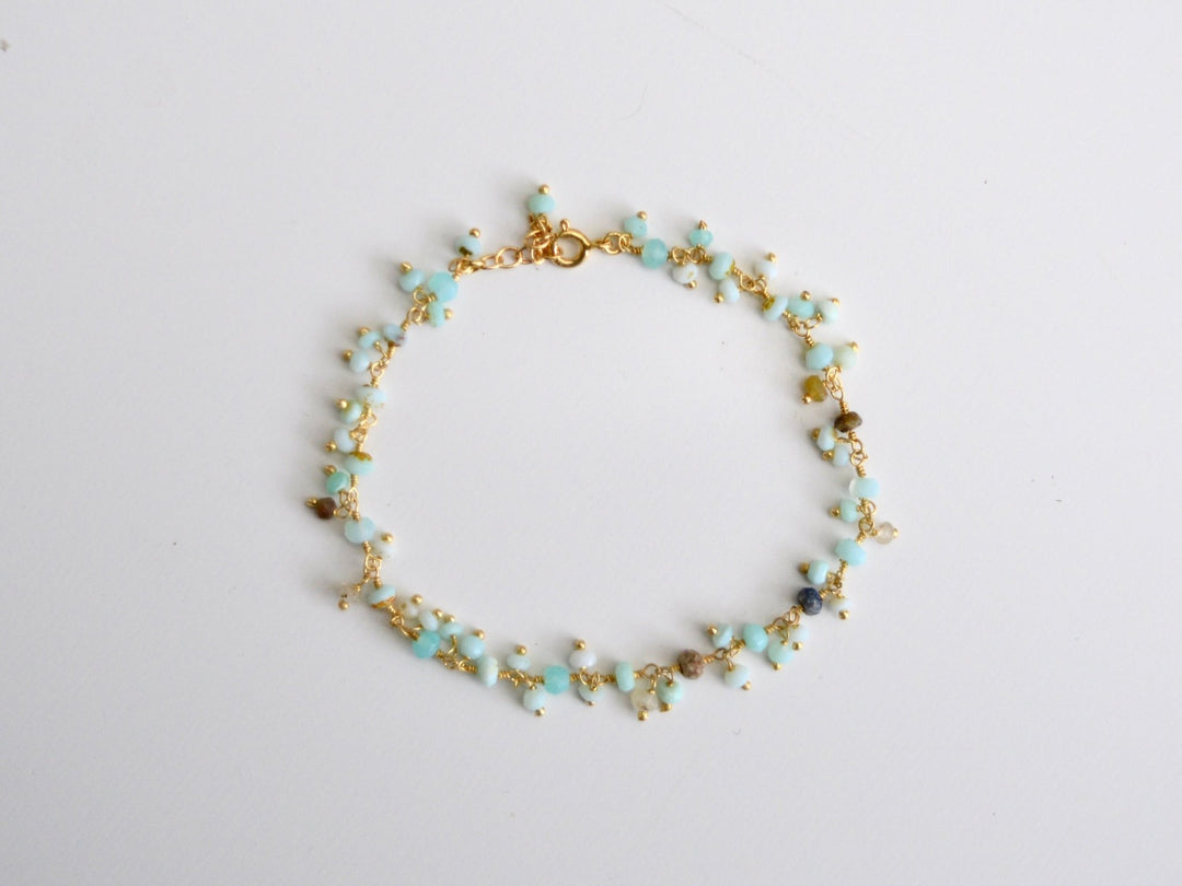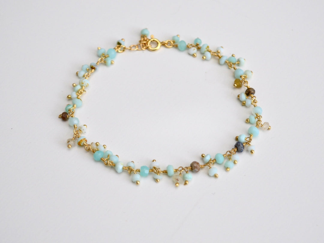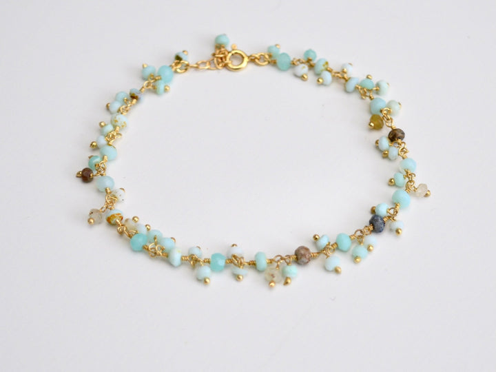 Ein ganz besonderes Armband: Die kleinen Perlchen aus peruanischem Opal sind mit hauchdünnem Draht aus vergoldetem 925 Sterling verarbeitet.