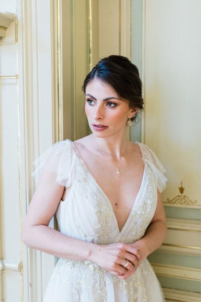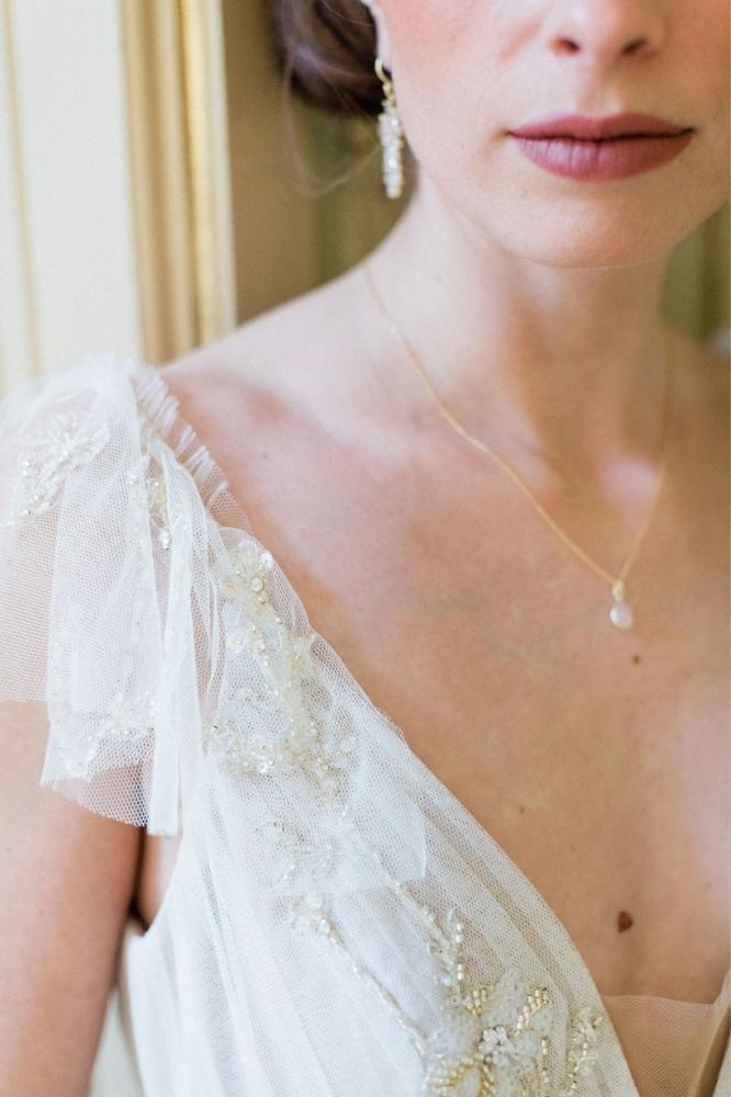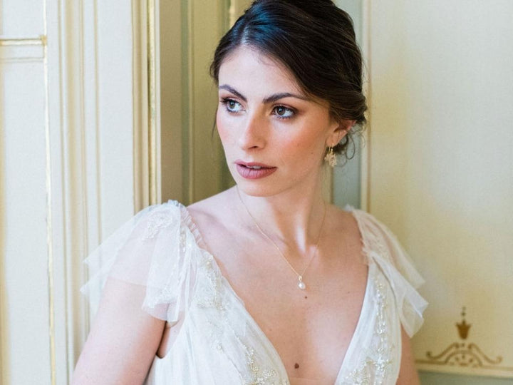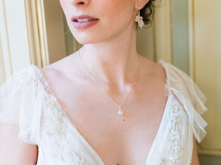 Ein ganz tolles, feminines Schmuckstück, das sich perfekt als Brautschmuck eignet. Die passenden Ohrringe findest du im Shop.
