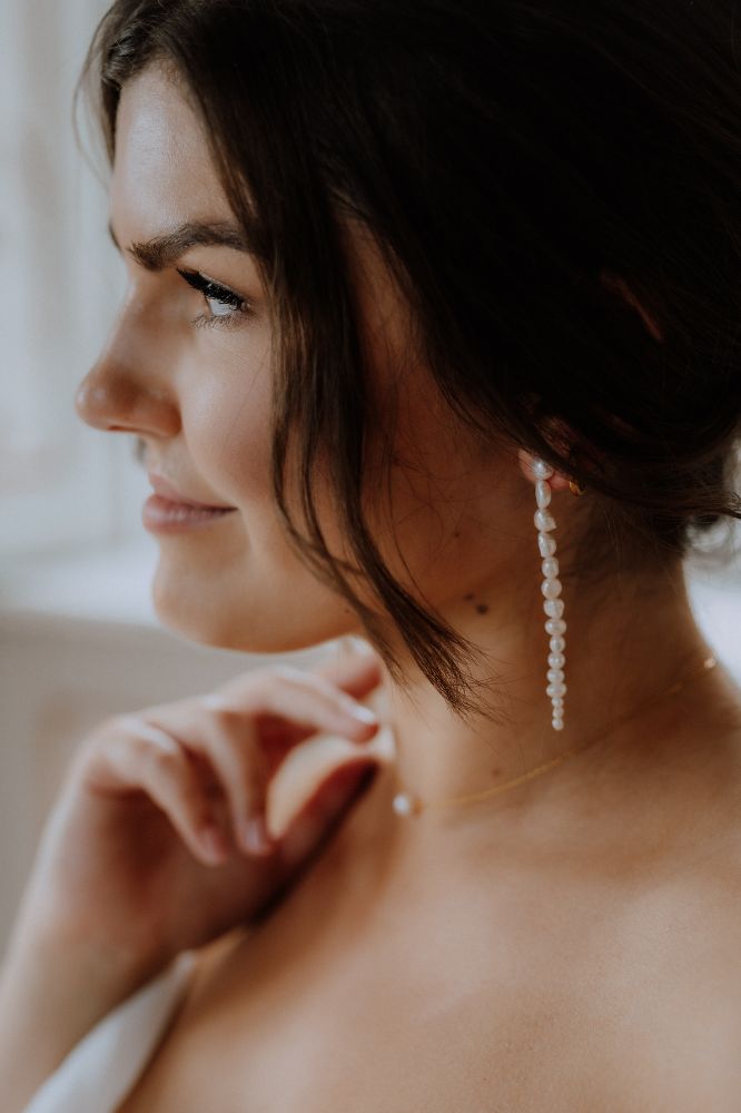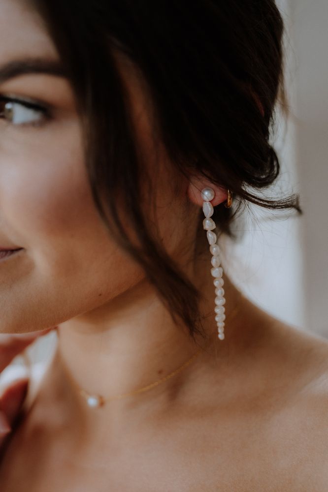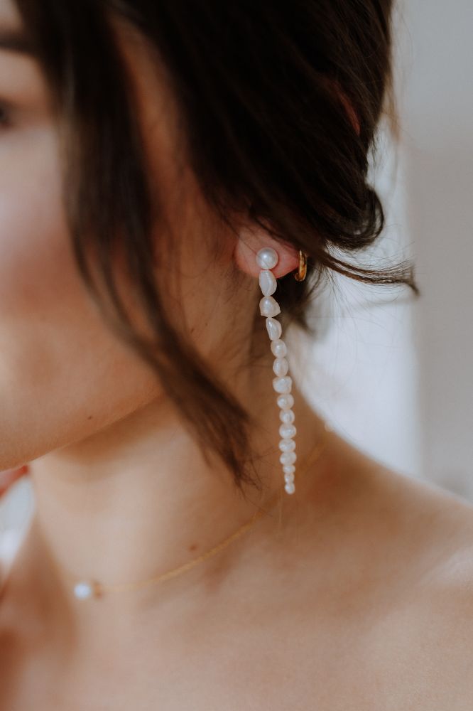 Diese langen Perlenohrringe mit echten, unregelmässig gewachsenen Süßwasserperlen haben unsere Herzen im Sturm erobert. Nicht dominant und doch ein Statement. Die Ohrstecker schmeicheln fast jedem Typ Frau, die Länge ist einfach perfekt!