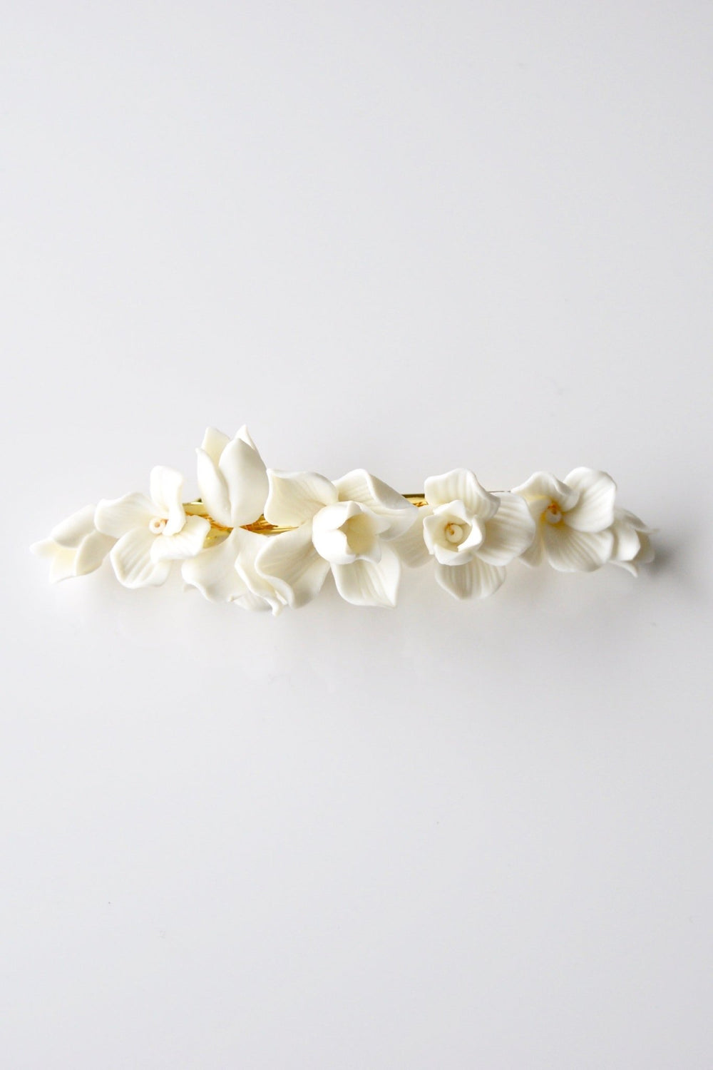 Unsere neue Haarspange Jonquille ist perfekt für alle mittel- oder langhaarigen Frauen, die auf der Suche nach edlem und modernen Haarschmuck für ihre Brautfrisur sind.